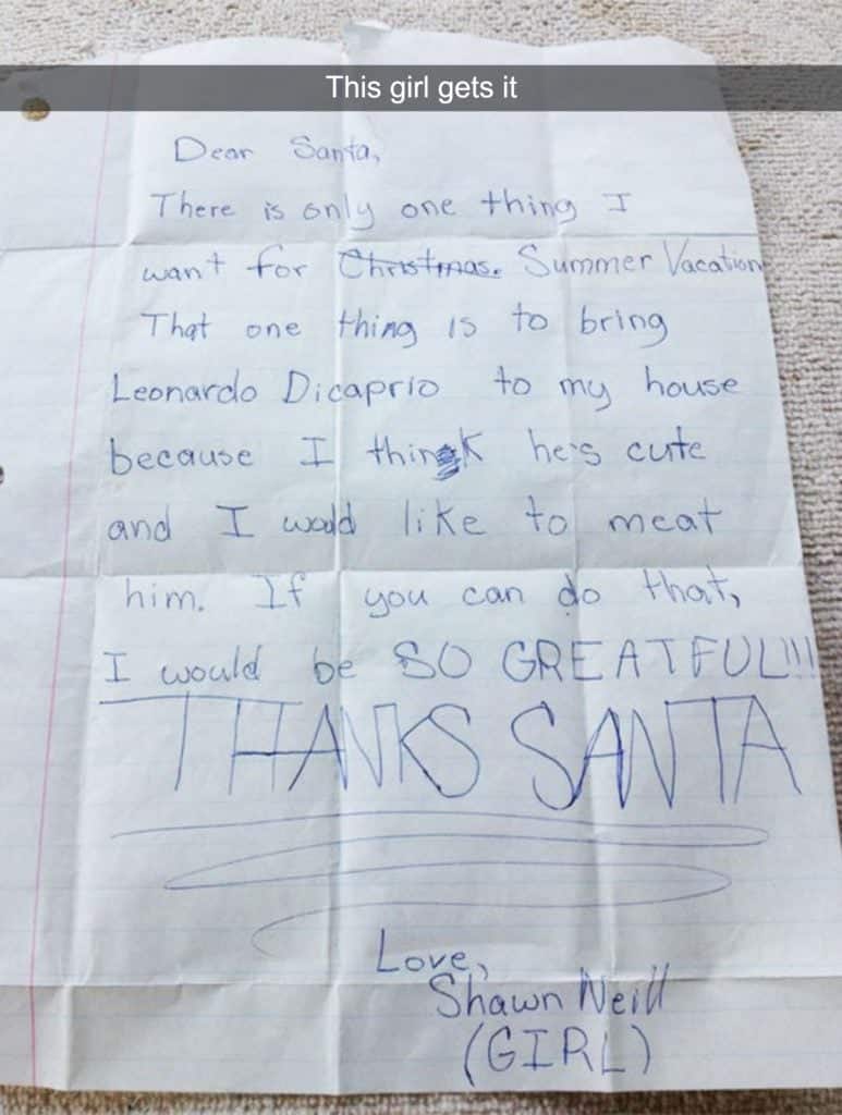 Let’s be honest – we’ve all had a crush on Leonardo DiCaprio after watching Titanic (or any other film of his). The award-winning actor isn’t just talented, but extremely good-looking, which partly explains his large fan-base. This woman has found her letter to Santa from when she was nine years old, and I’m sure she can still relate.