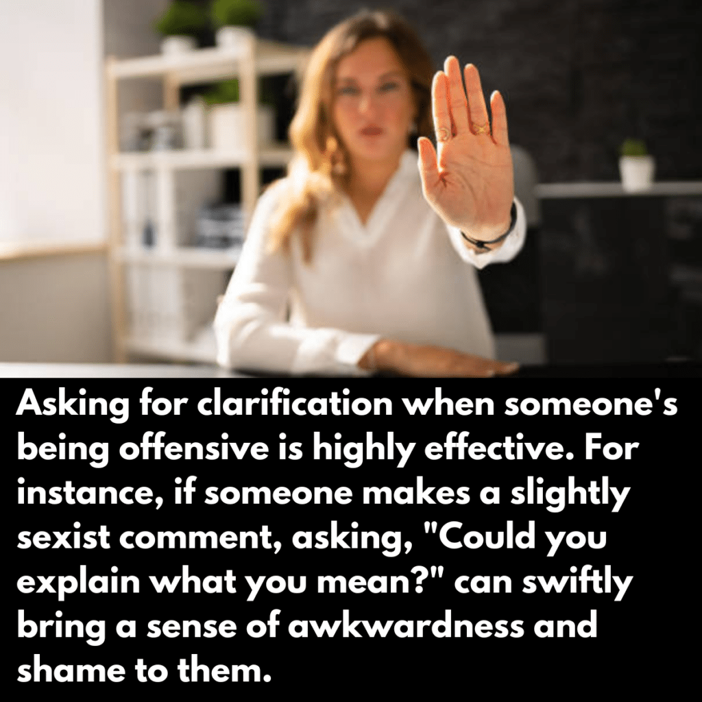 The beauty of this is that it keeps the ball in your court and also allows you to maintain a facade of complete innocence. You’re merely asking them to explain themselves, you’re not engaging in argument, and certainly not humiliating them. Just try it out and see how it goes.