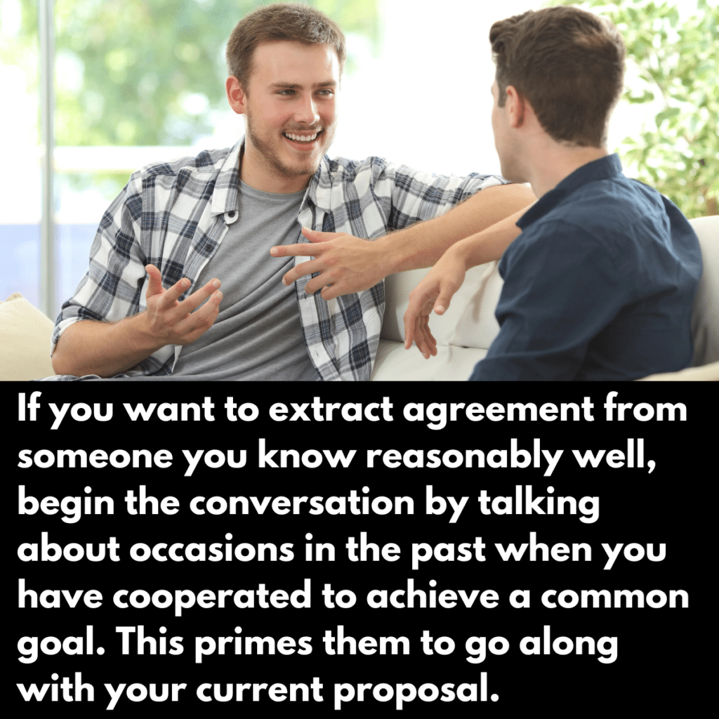 The value of primers in our conversations is really quite astounding. It can very easily shift a conversation from a lousy one to an effective one, yielding better results for the primer and the primed. Familiarity, love, calm, laughter – whatever foundations you want to build the conversation on, just lay them down verbally before you start.